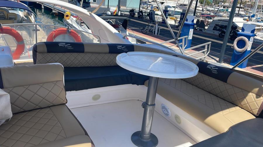 Hélice de proa, cofre con tapa con hidráulico para estibar una neumática u otros juegos de playa, chalecos, etcétera. Nevera interior y exterior (averiada) mueble corrido a la banda de babor con fregadero. Mesa dentro cabina y exterior en bañera. Solarium de proa y popa (nuevo diciembre de 2024). Fondo bañera, plataforma baño en material EVA.