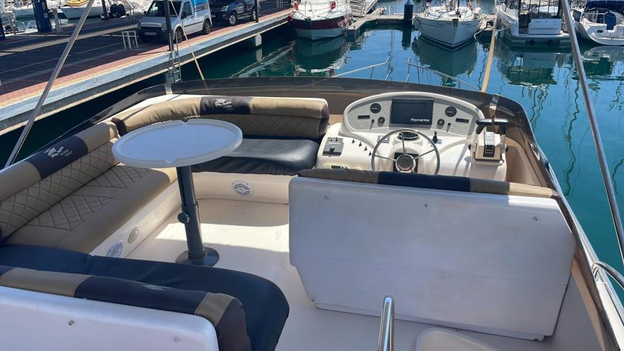 Su flybridge amplio y bien distribuido invita a disfrutar del mar con vistas privilegiadas, perfecto para relajarse, socializar o gobernar la embarcación con total control. En el interior, encontrarás espacios luminosos, acogedores y funcionales, pensados para el máximo confort a bordo.