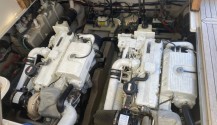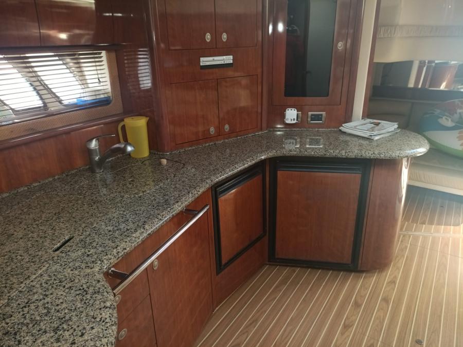Diferentes Ice-Markets, neveras, frigoríficos en fly-brige y en bañera. Cocina completa con entrada por babor con puerta de seguridad y por salón. Puerta especialmente confeccionada con sensor de presencia. Aire acondicionado con FanCoils de 10 velocidades (muy silencioso). Colchonetas en todo el barco muy cuidadas. Sistema de toldo corredizo en hard top en fly-briege con doble tejido. Diferentes campas tanto en proa como en fly-brige. Al no tener gura por tener la neumática semi-rígida en fly-brige se ha acondicionado la parte de popa del fly-briege con solarium de popa y campa. Mesa de bañera, vestida por dentro con acero inox. AIS316. Ducha con conexión rápida en zona de plataforma para poder estibar fácilmente. Portón hidráulico. Sala de máquinas en perfecto estado de mantenimiento. Molinete electrico nuevo de hace una temporada, cadena y anclas en acero inox 316 AIS.