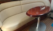 Tapicería nueva toda sustituida: asientos, solarium proa, popa, lona de fondeo y toldo bimini. Esquema color crema y negro.